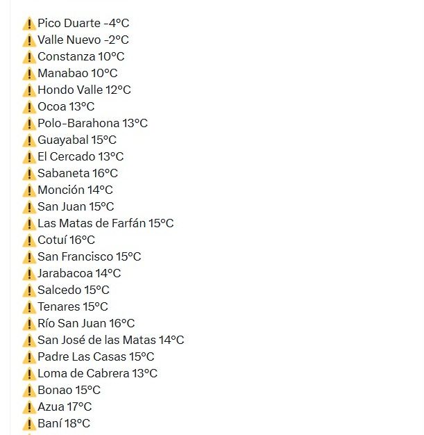 “El friito más intenso se reflejará entre las 7 PM y las 9 AM debido al flujo de vientos del norte y noreste, generados por una alta presión en el Atlántico”, dicta el post.